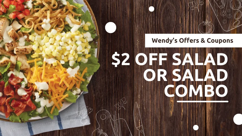 Wendy’s $2 Off Salad or Salad Combo allows you to enjoy healthier, fresh, and delicious salads at a discounted price. The offer is valid on a variety of salads, such as Southwest Avocado Chicken Salad, Crispy Chicken Caesar Salad, Grilled Chicken Caesar Salad, and Apple Pecan Chicken Salad.